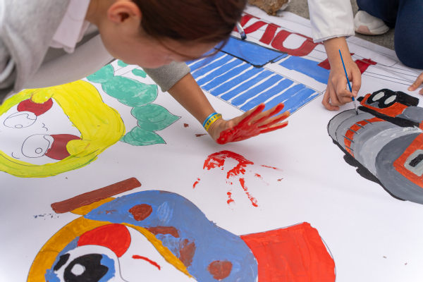 整体绘制完成后,全体成员有序上前,以手掌蘸取环保颜料,在长卷空白处按下专属手印。五彩斑斓的手印交织成枝繁叶茂的“青春树”,手掌纹路如同成长年轮,镌刻着青年在团组织引领下扎根成长的足迹,紧密相连的印记更寓意着各支部团结协作、携手同行的信念,将现场氛围推向高潮。